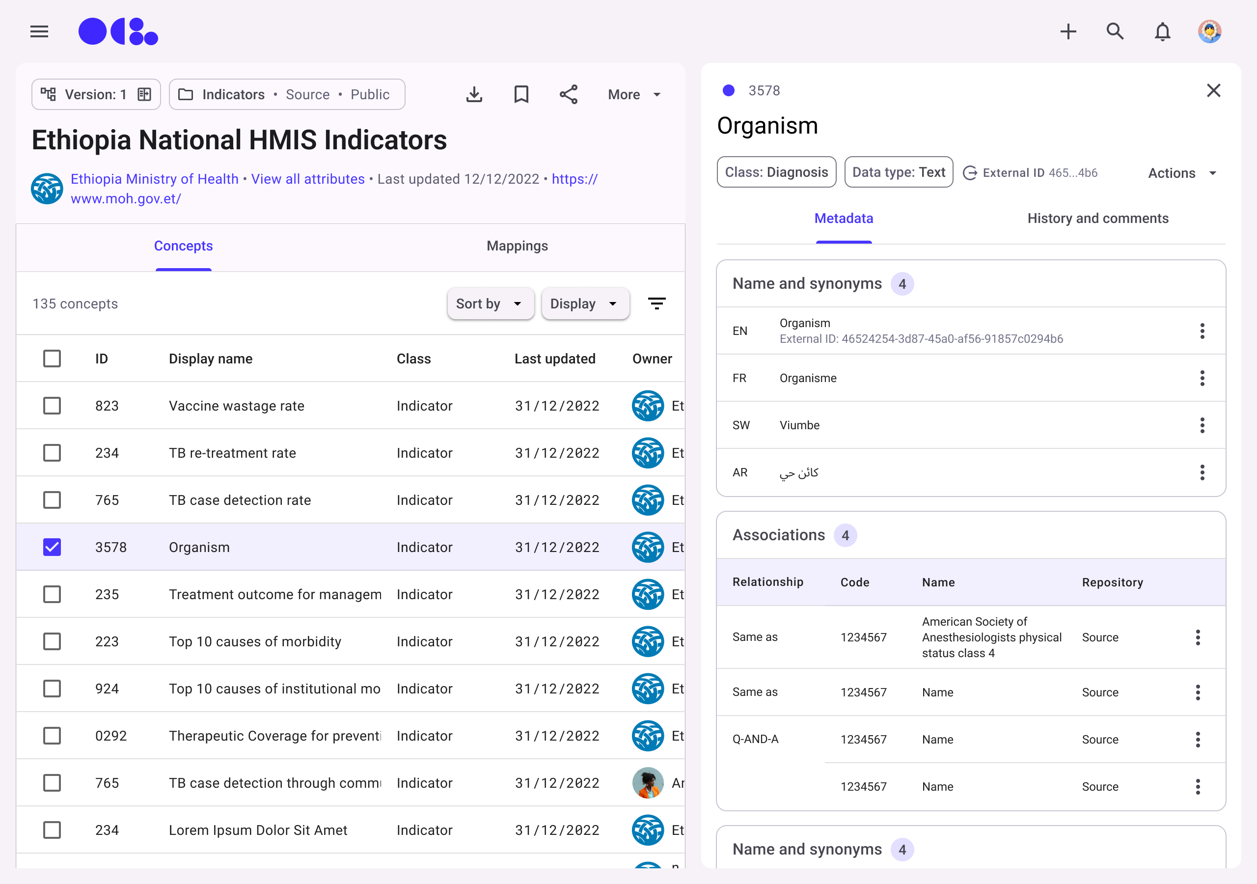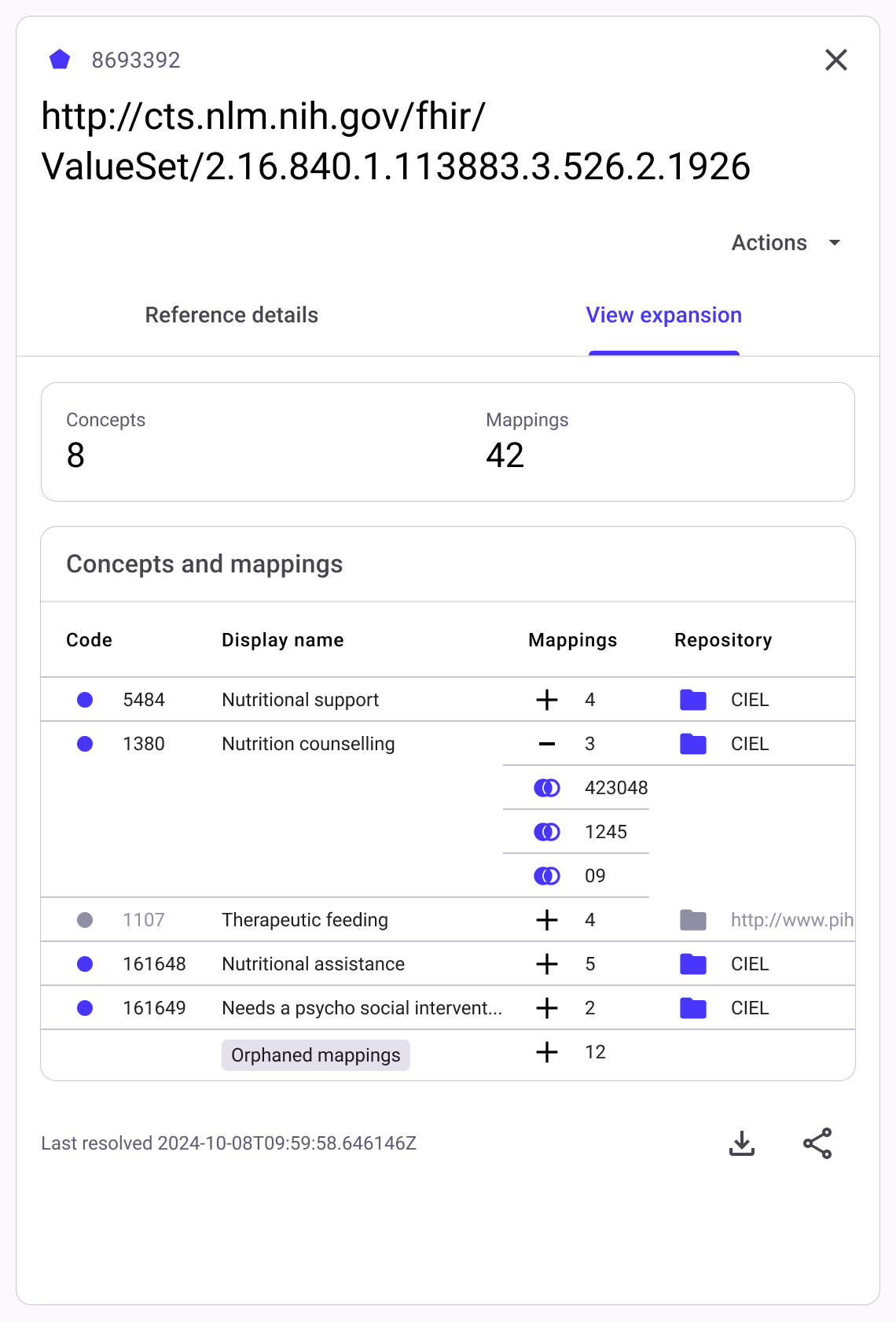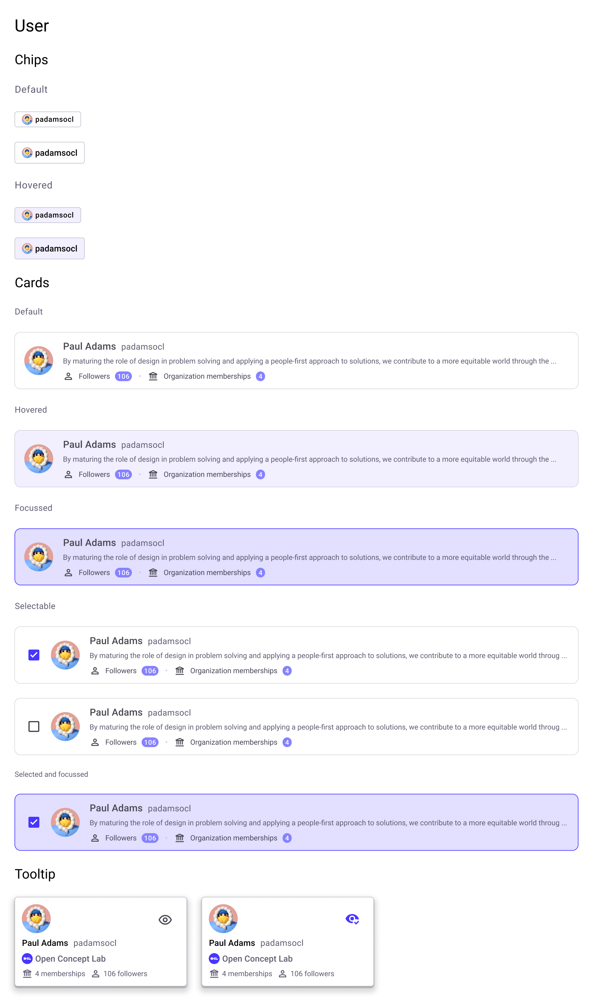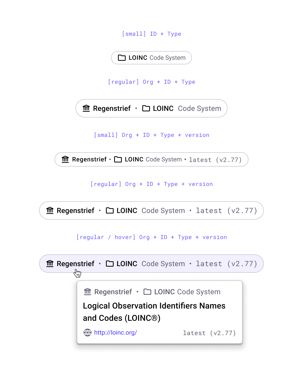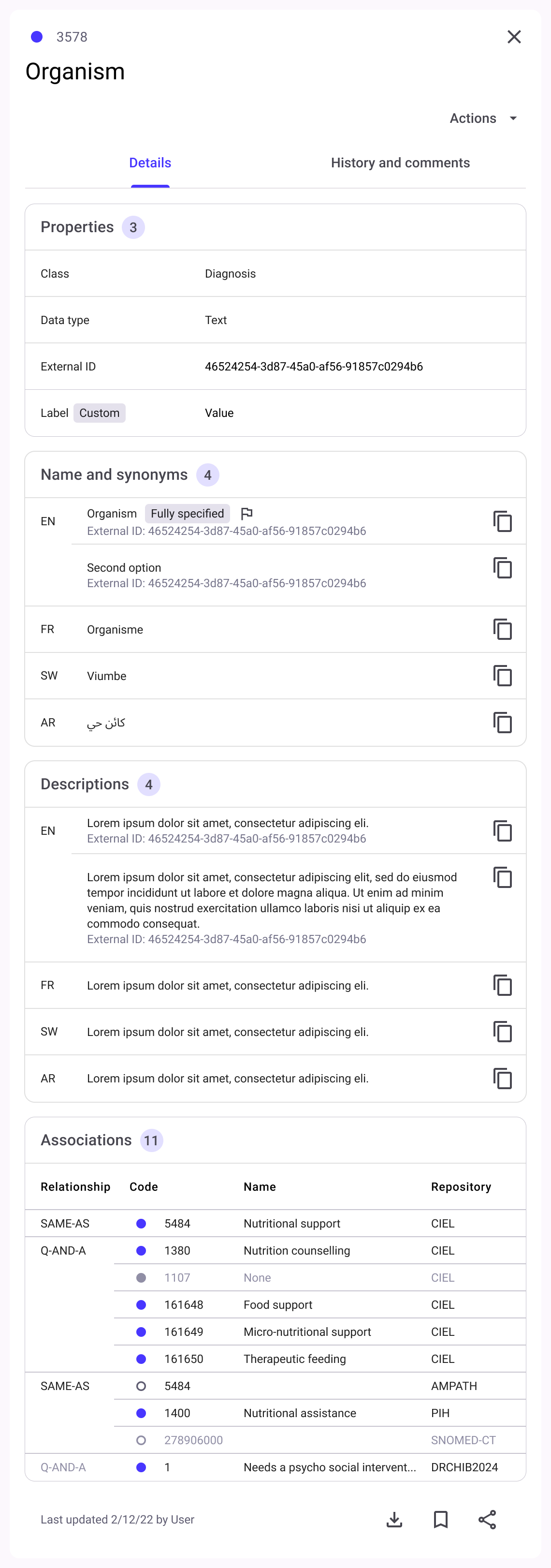 Card designs exist; tooltips and chips aren't implemented for concept/mapping/reference/expansion yet. Associations are present but not hierarchical.