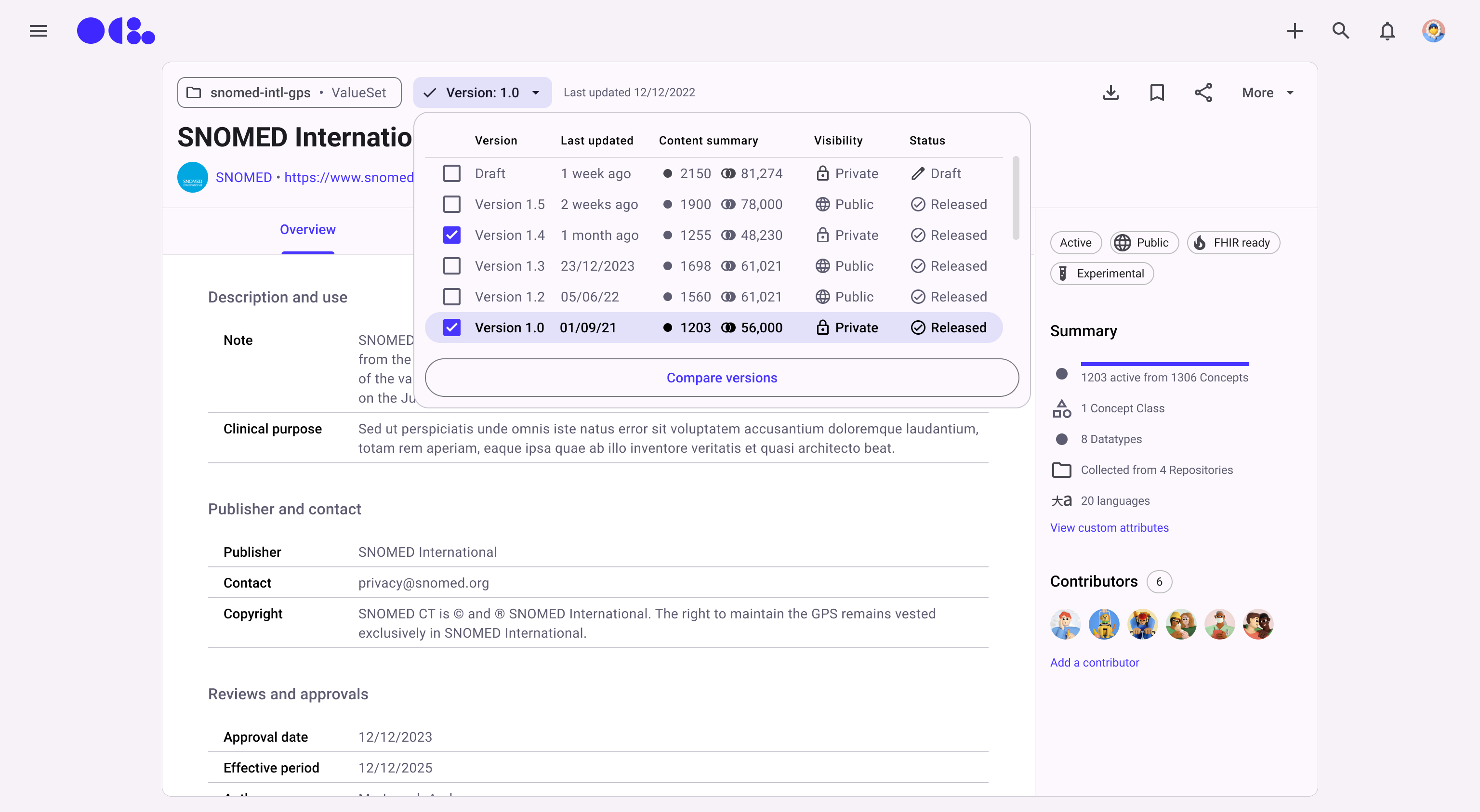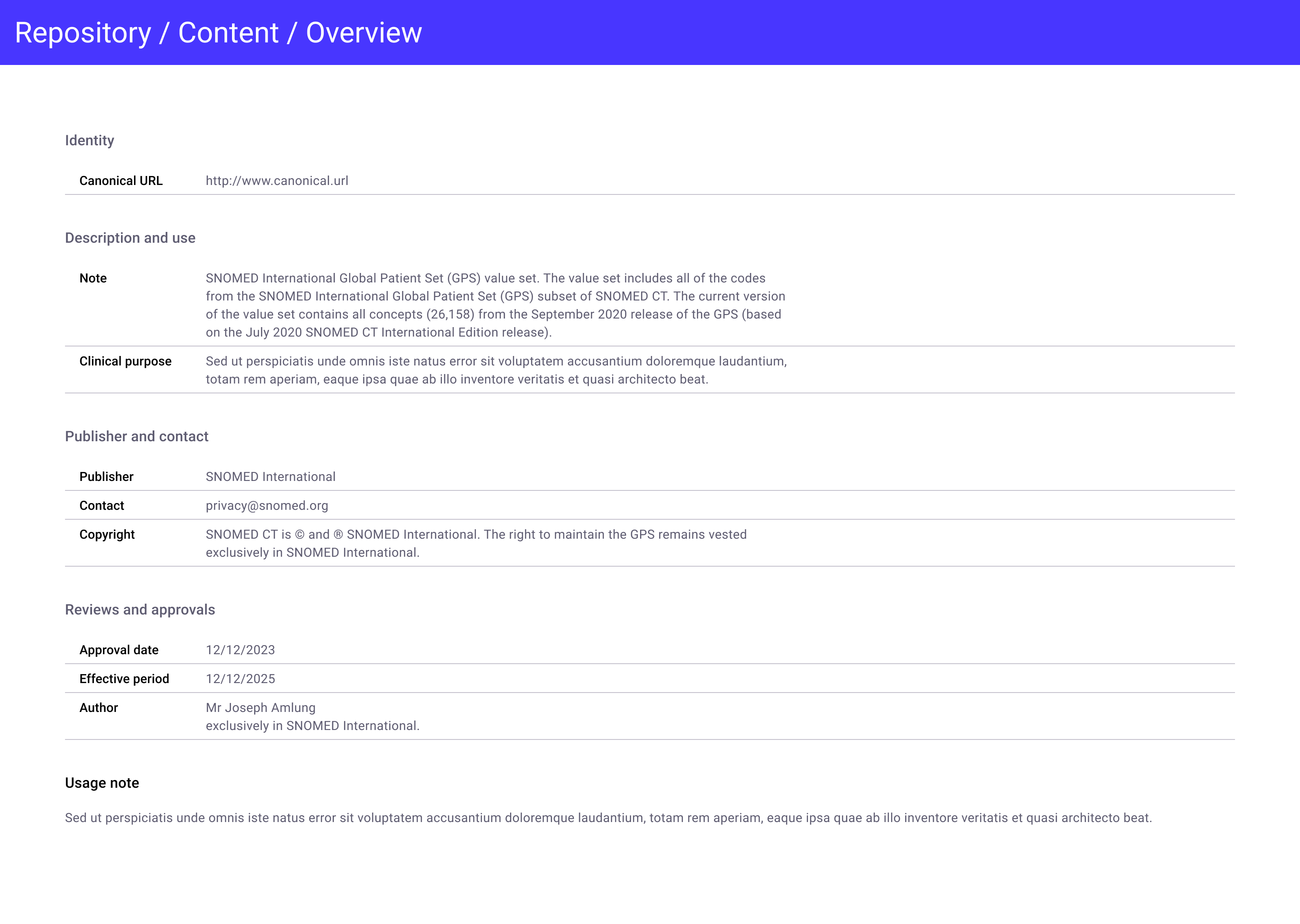 Mix of implemented (card view pattern, copy code system) and not-yet-built (key-value overview, valueset views, collection references). Card-view dialog workflow is kept as input but not MVP.