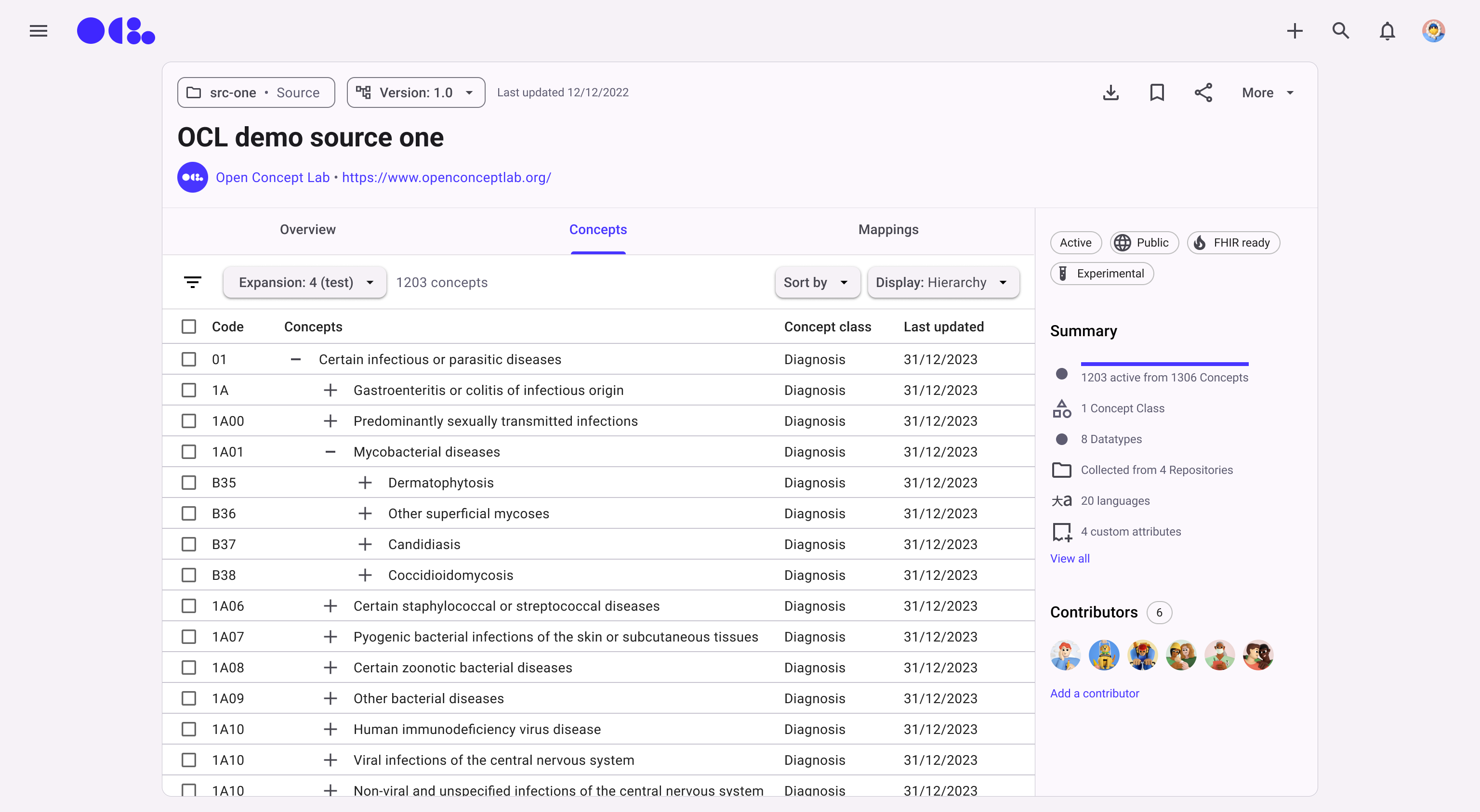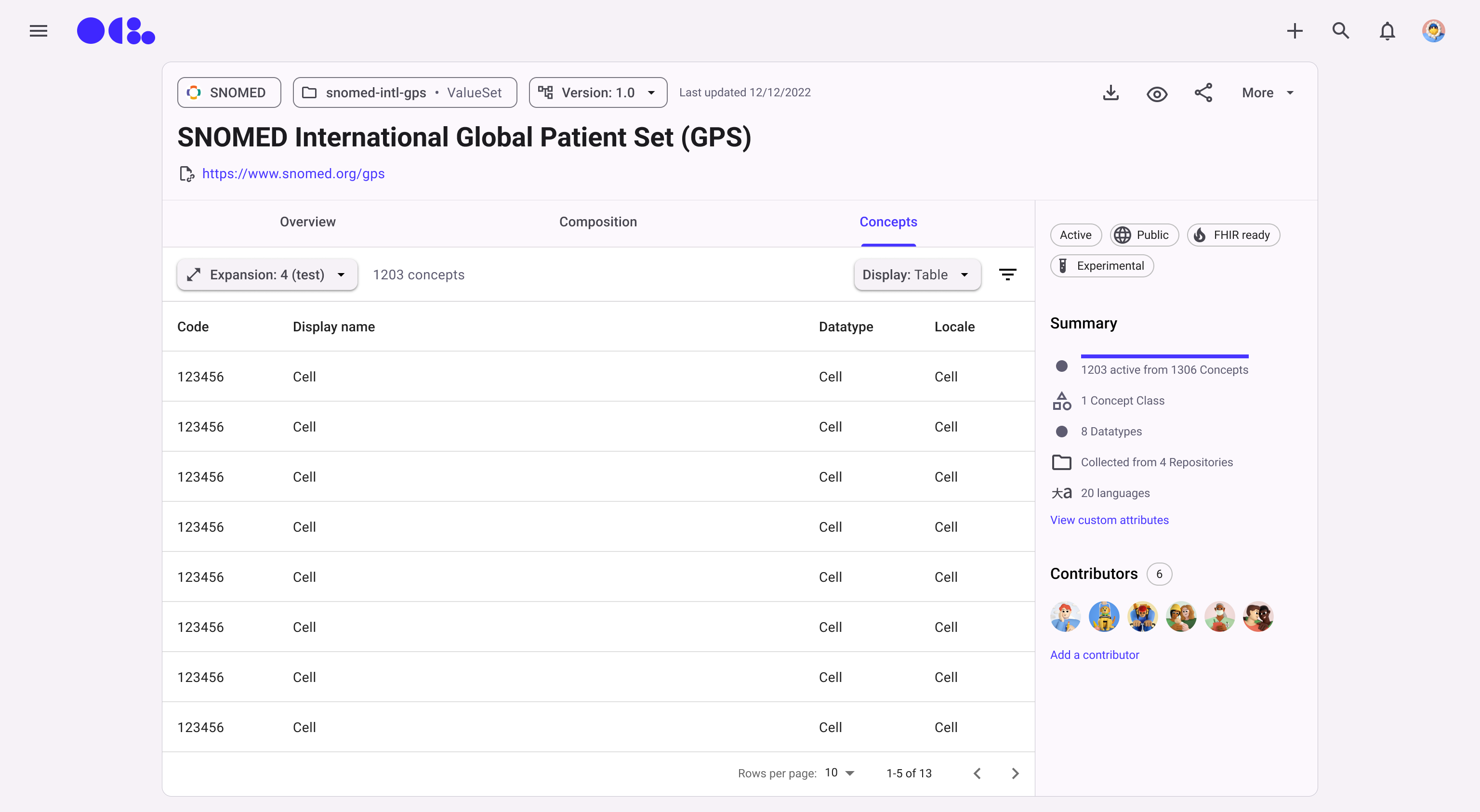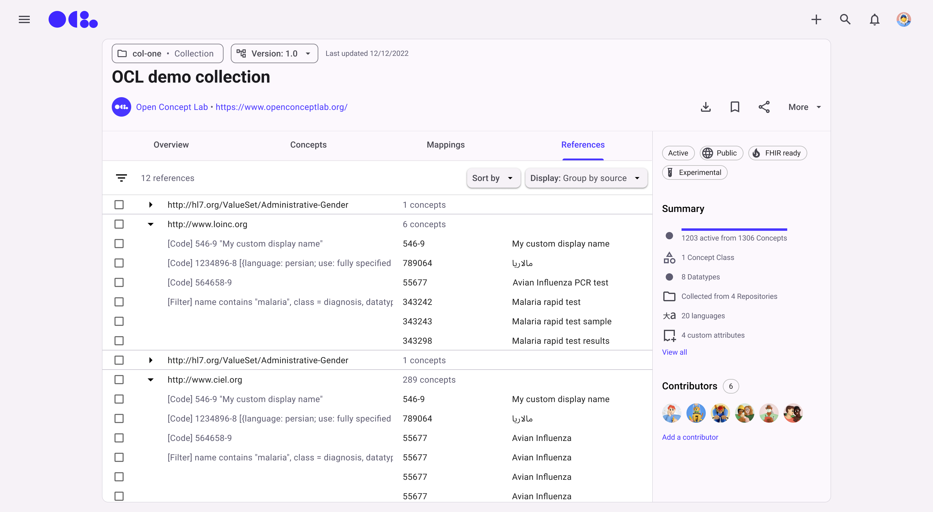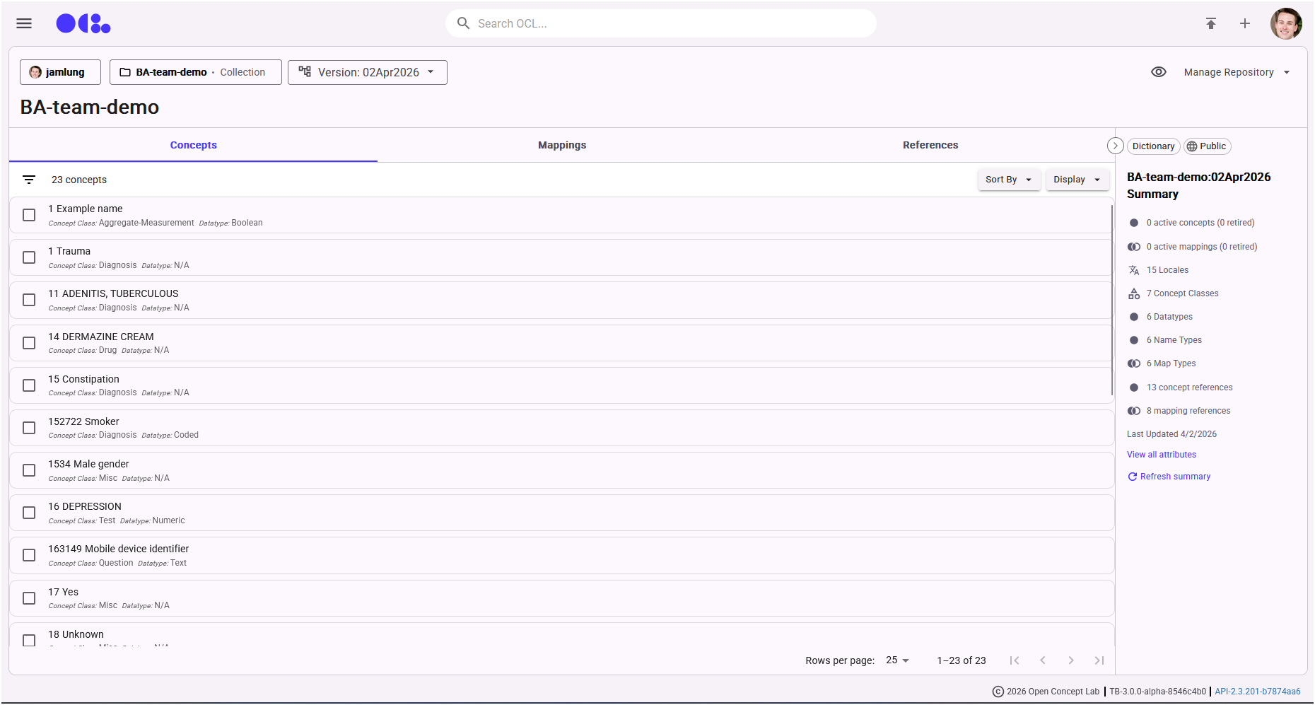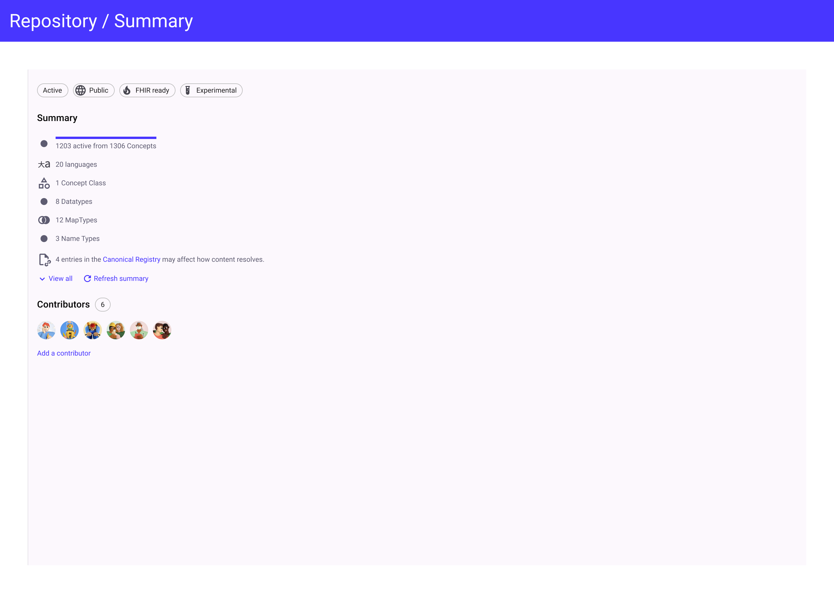 Concept card view is divergent from canonical (OCL Mapper work added multi-property support). Grouped/hierarchical views are mostly not implemented.