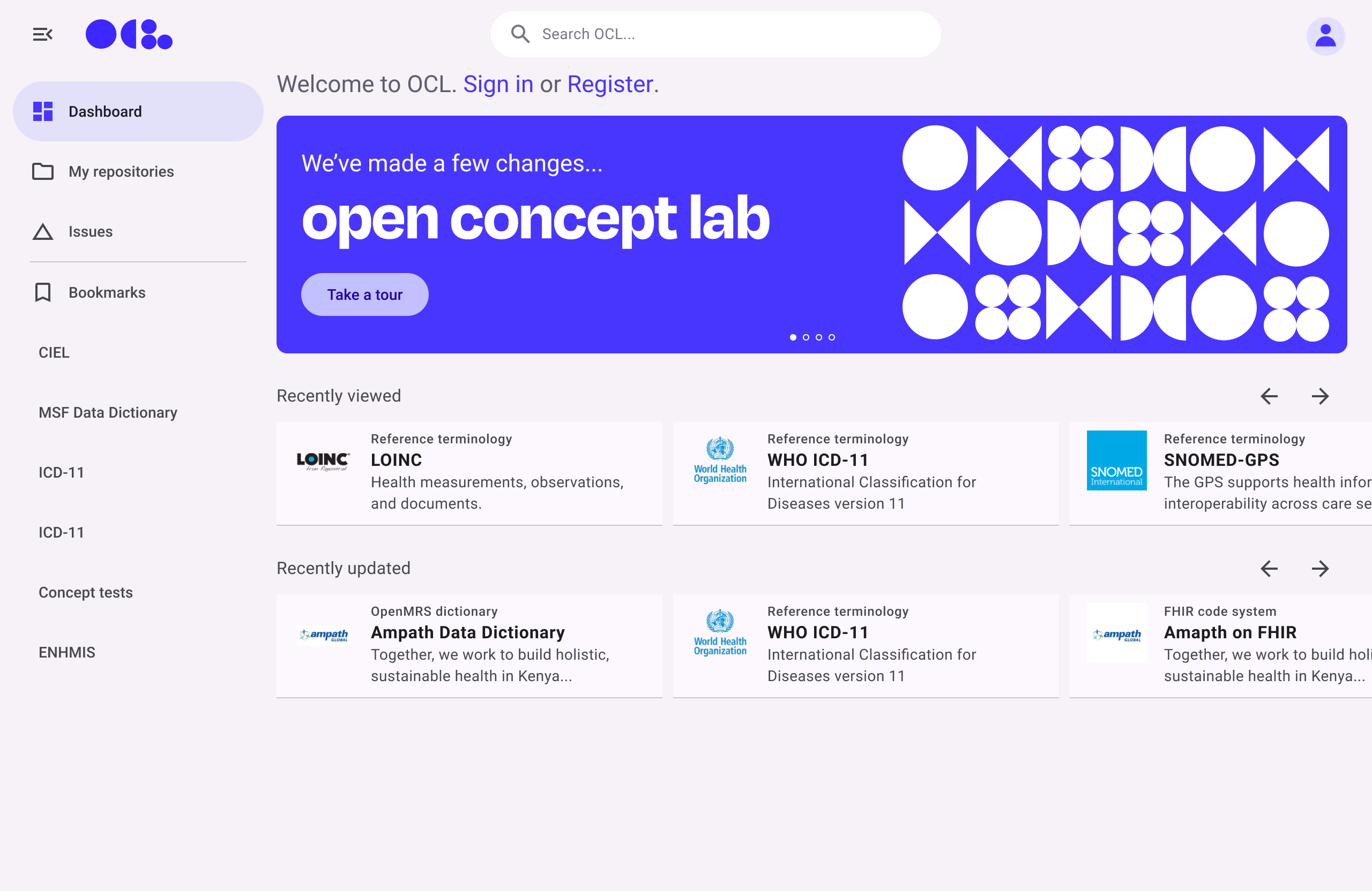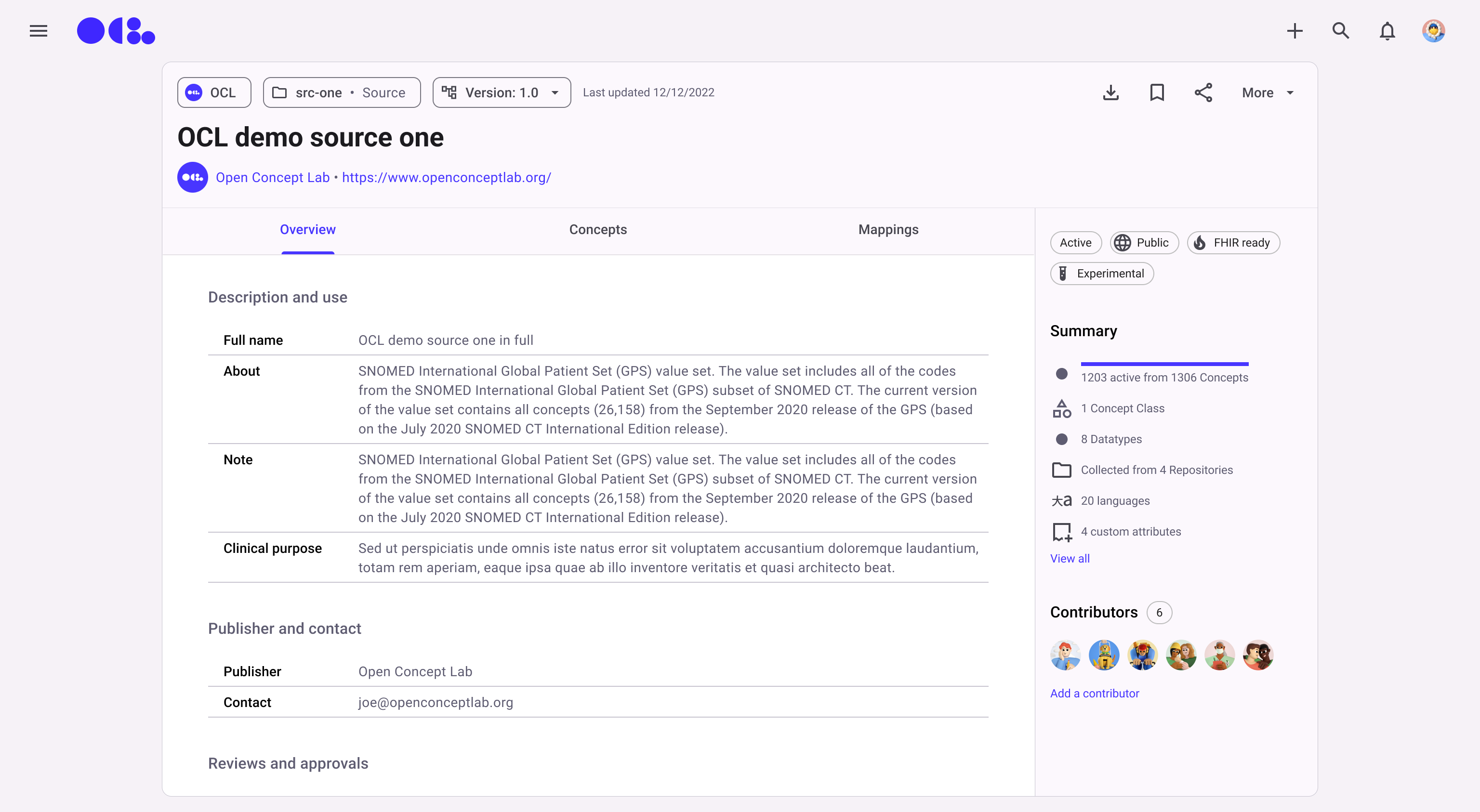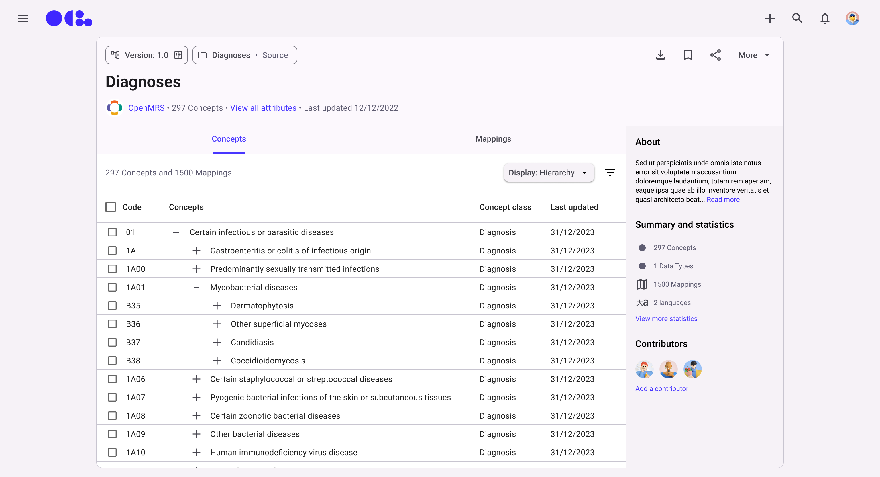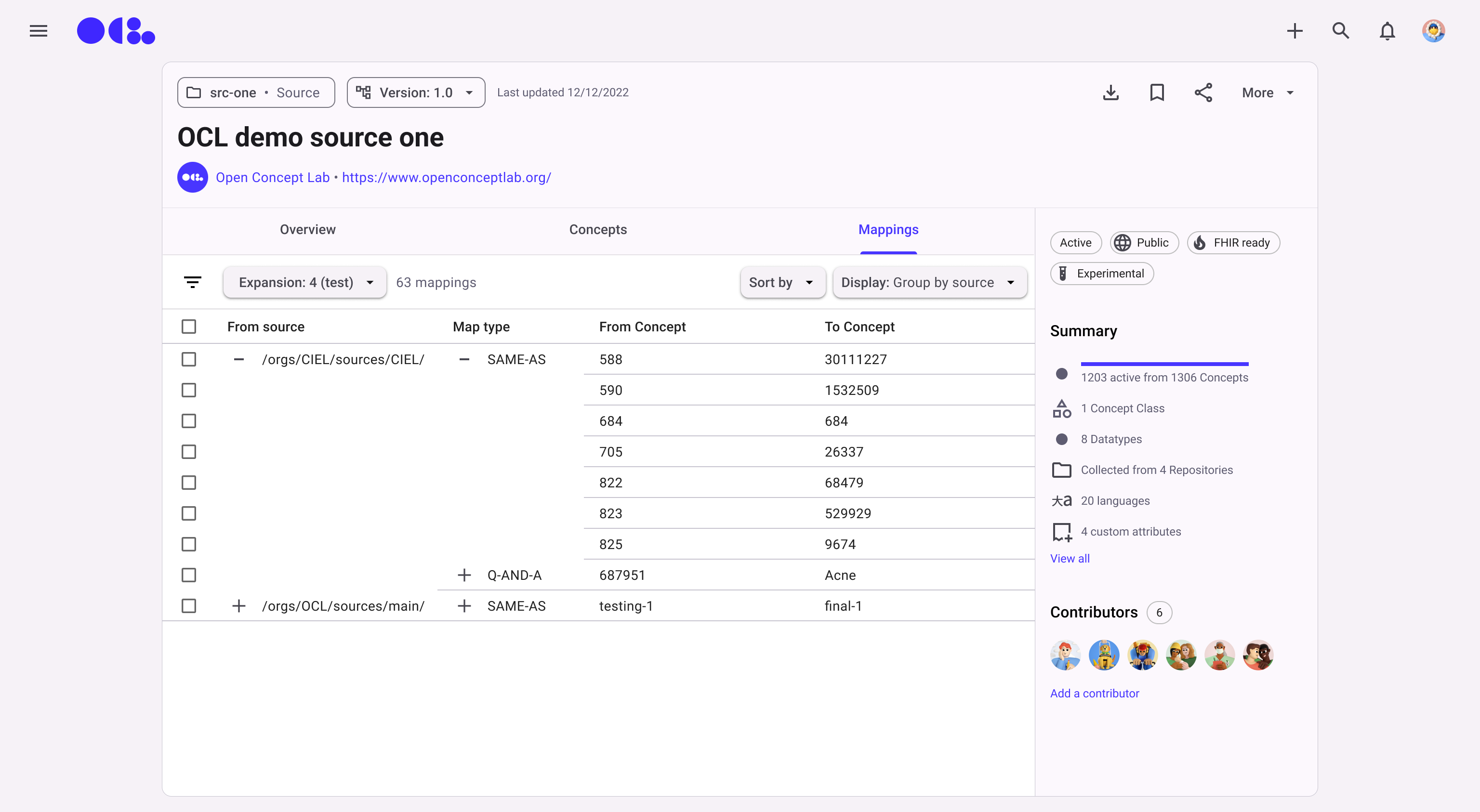 Concept card view is divergent from canonical (OCL Mapper work added multi-property support). Grouped/hierarchical views are mostly not implemented.