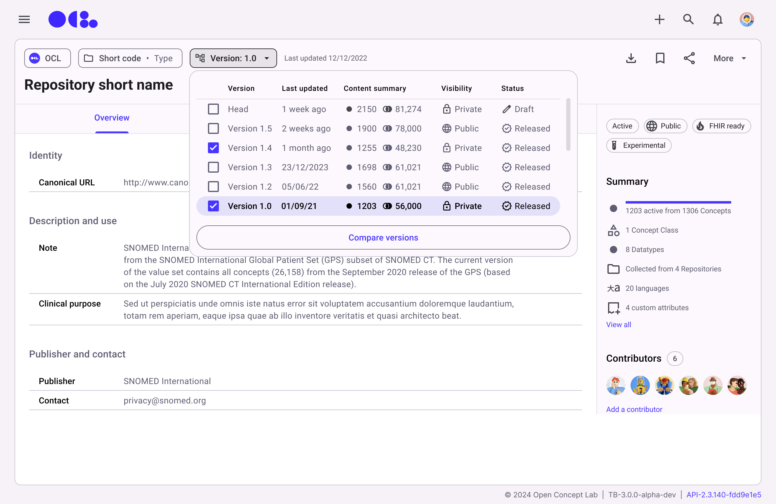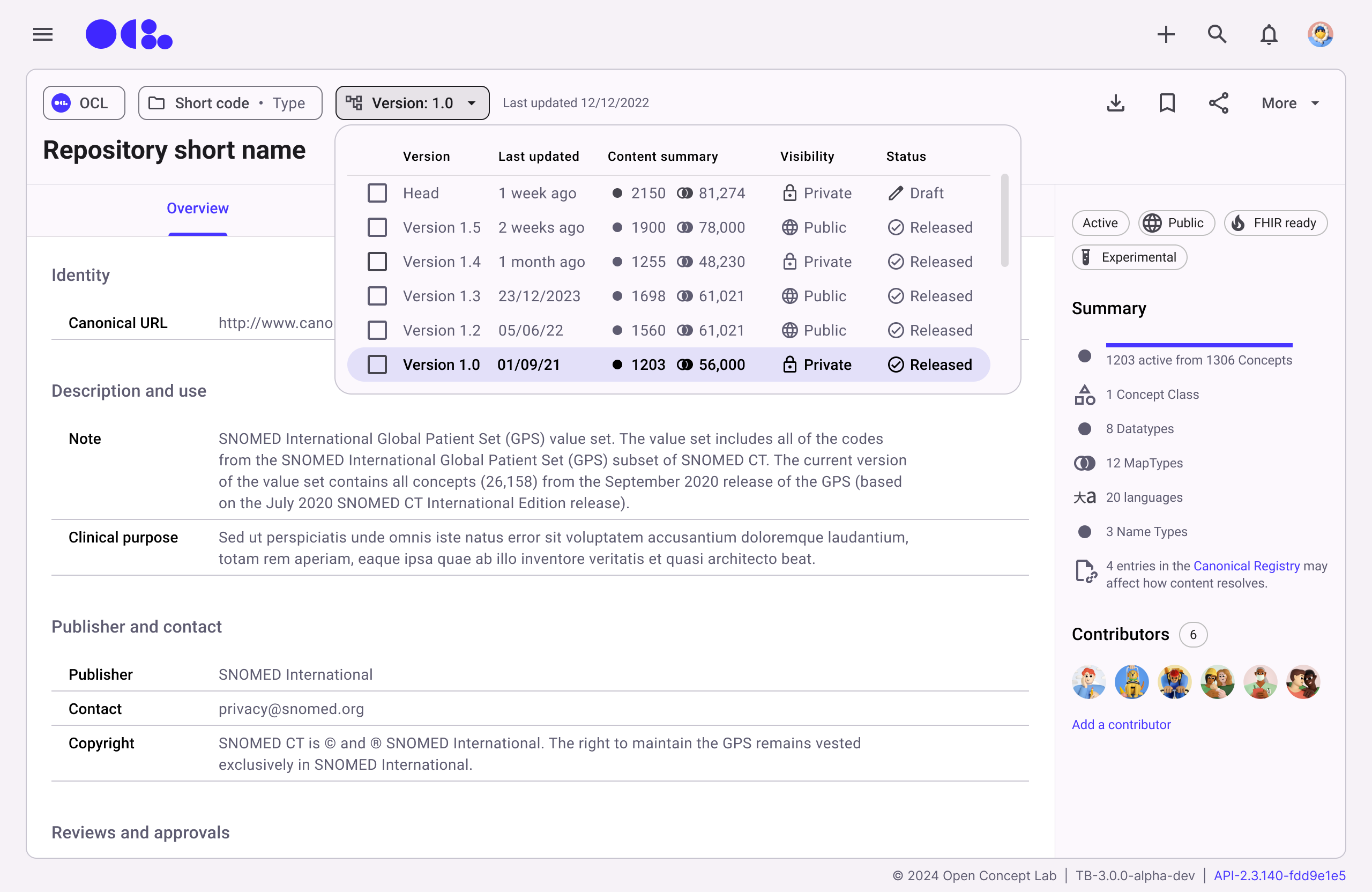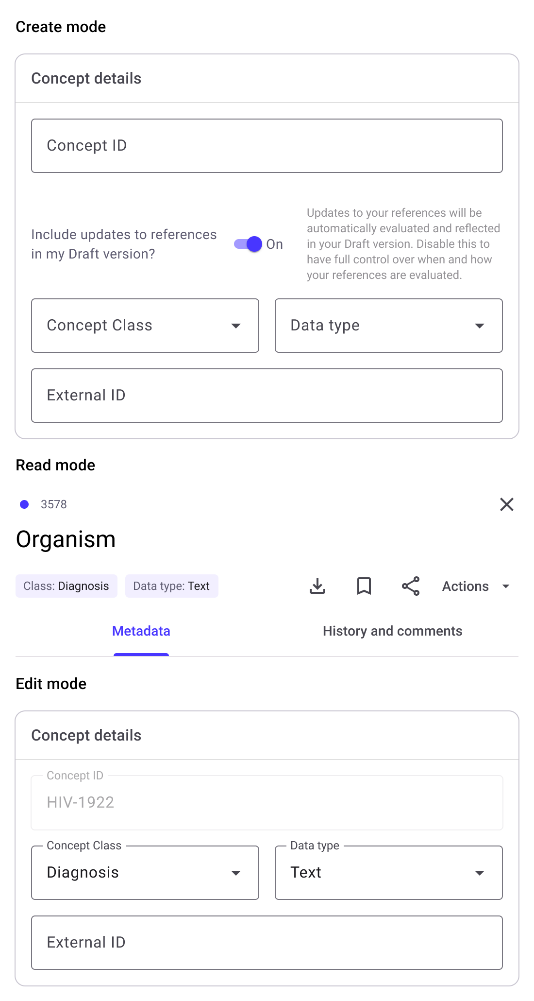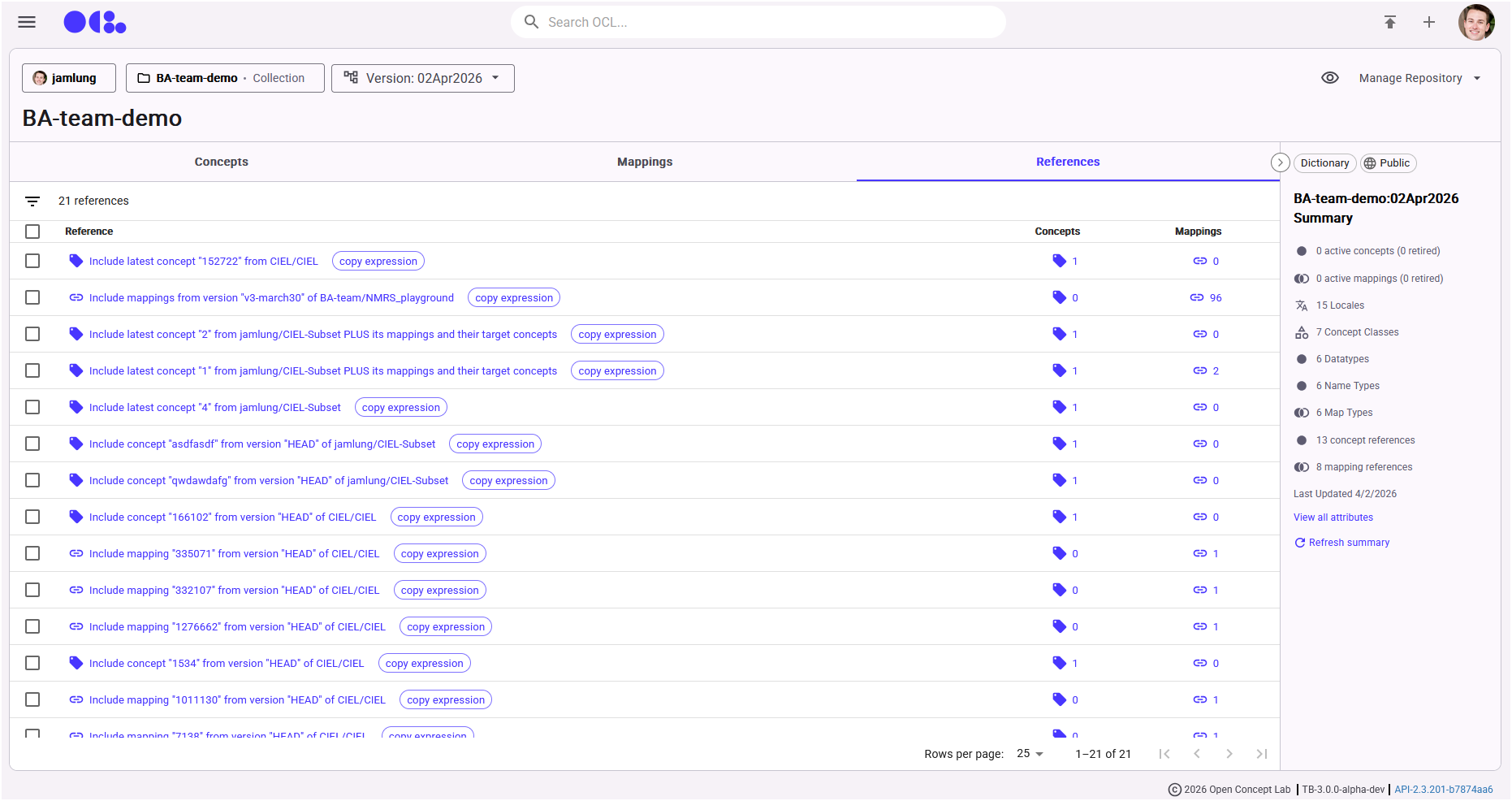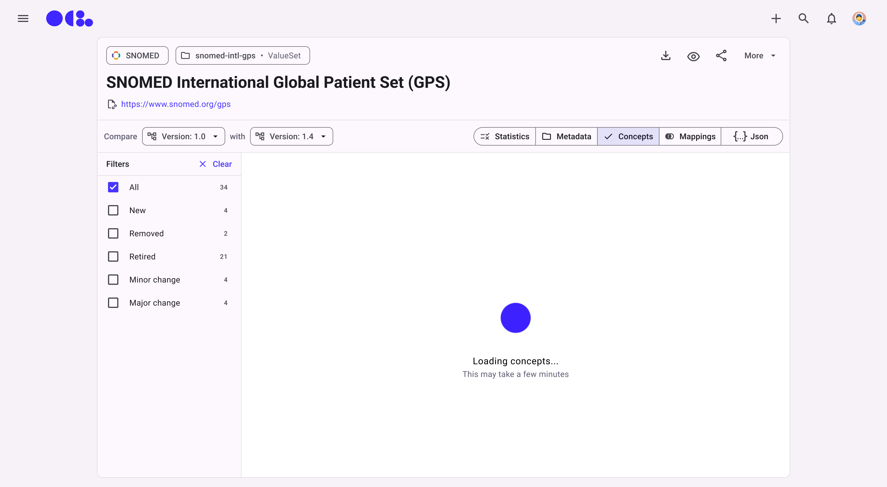Concept card view is divergent from canonical (OCL Mapper work added multi-property support). Grouped/hierarchical views are mostly not implemented.