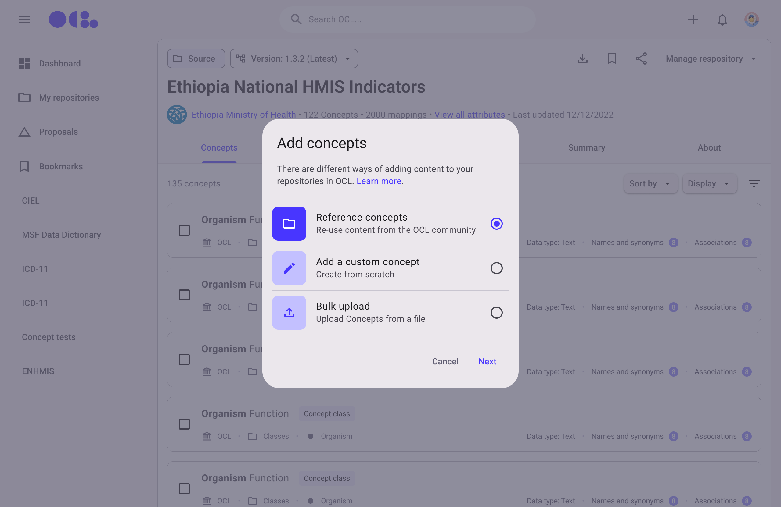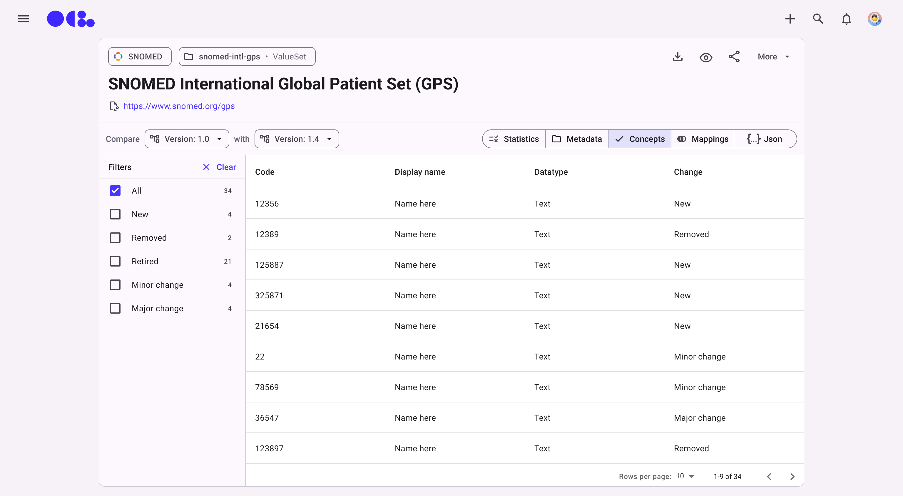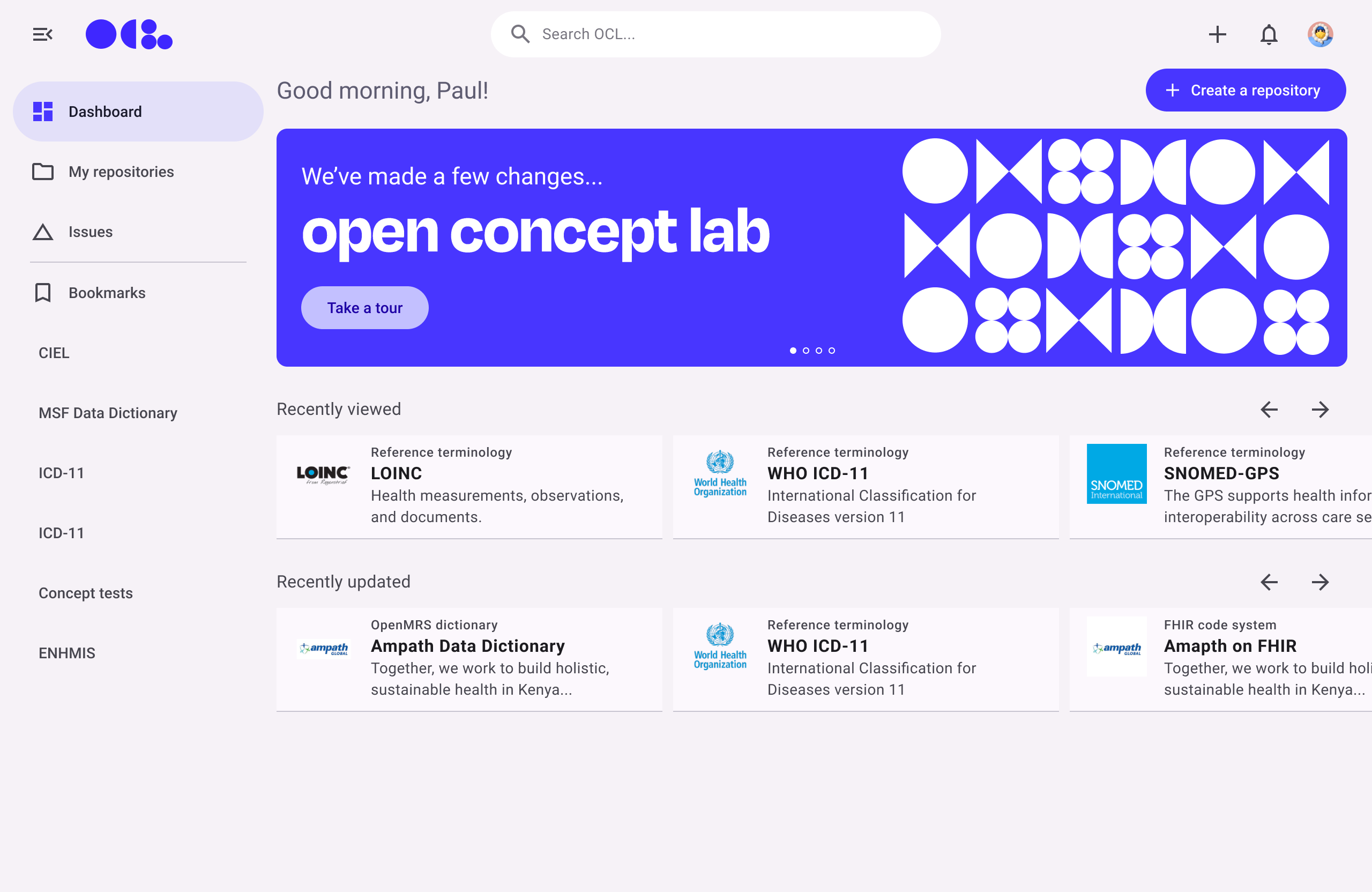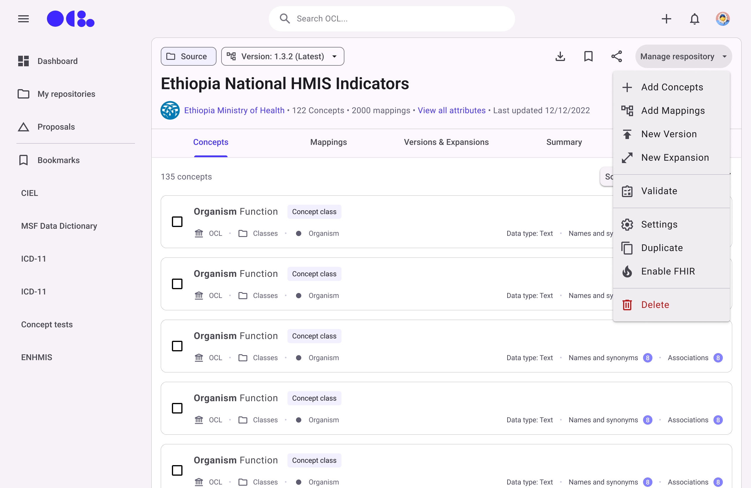 Concept card view is divergent from canonical (OCL Mapper work added multi-property support). Grouped/hierarchical views are mostly not implemented.