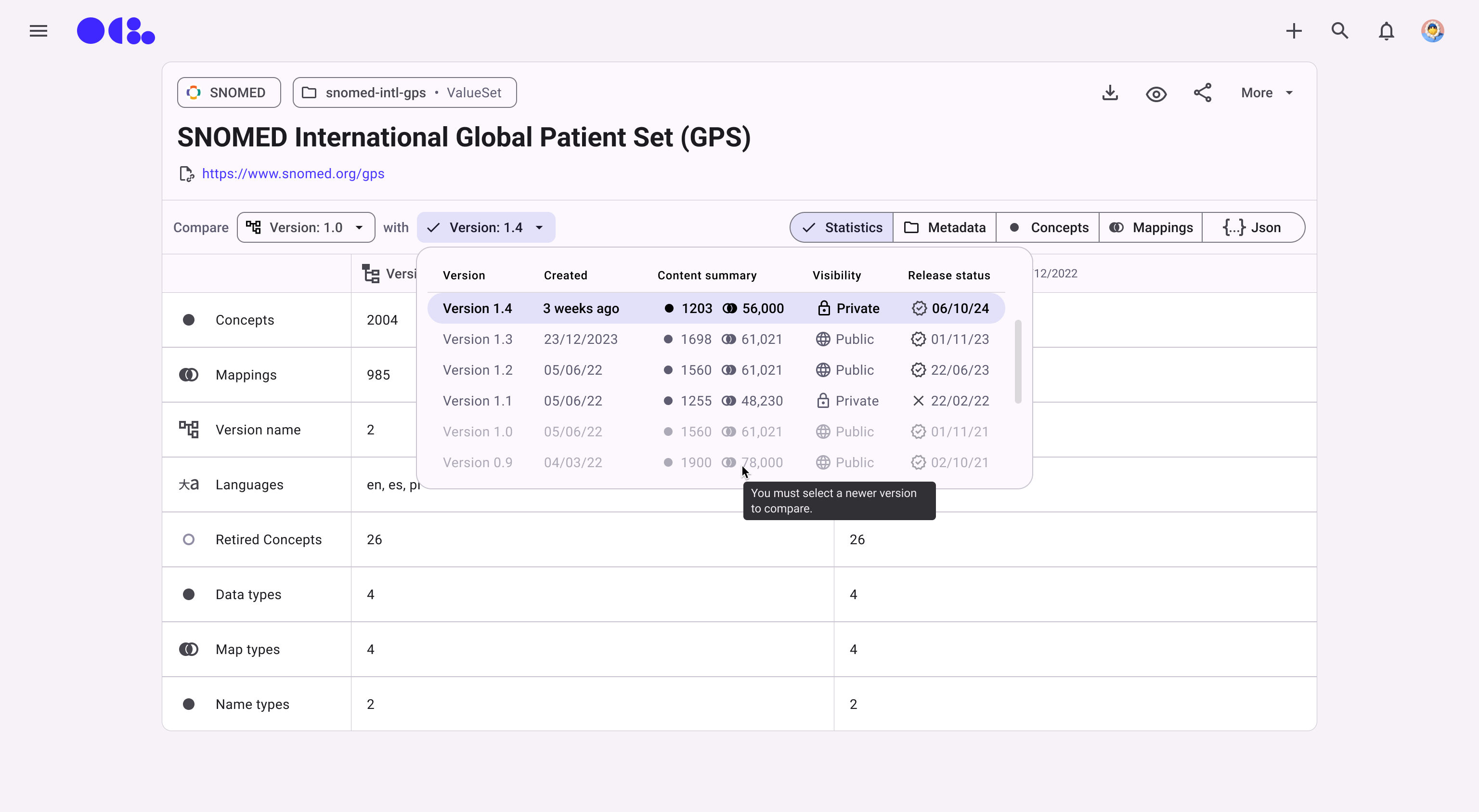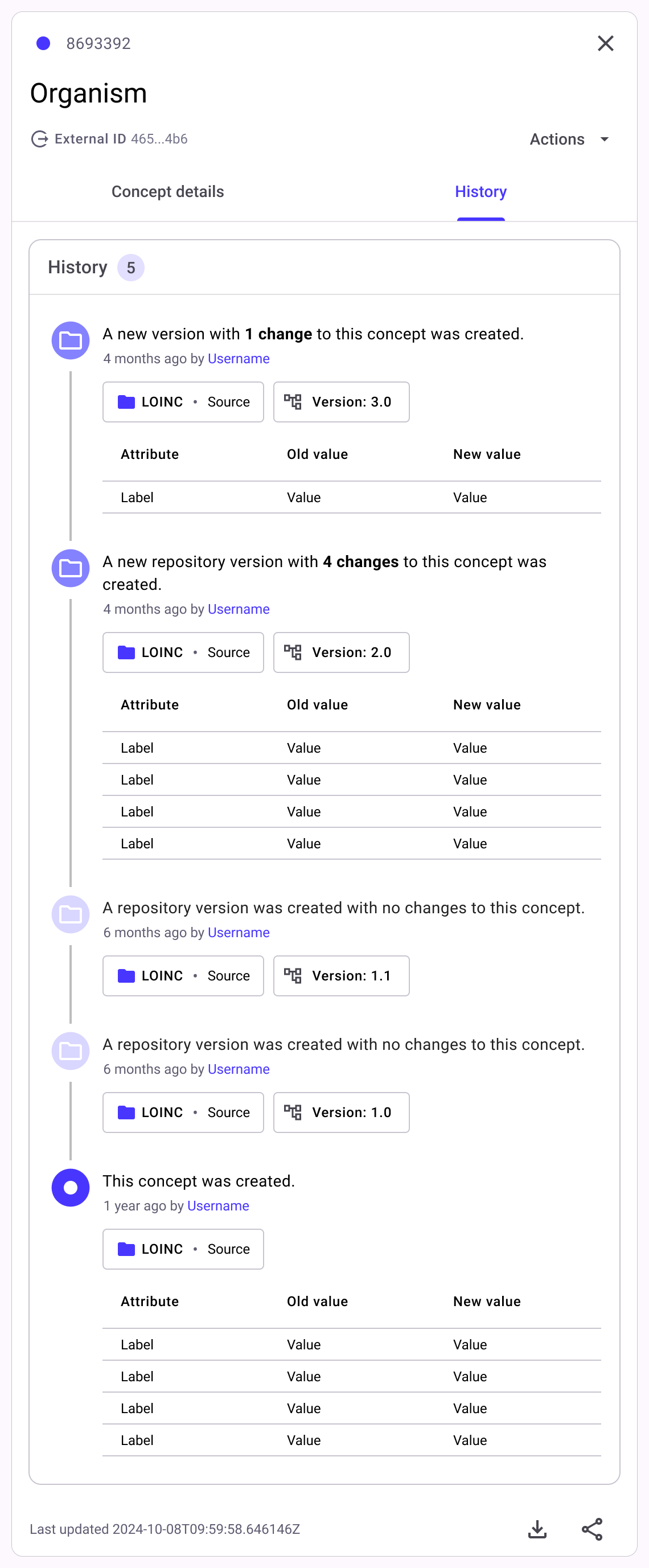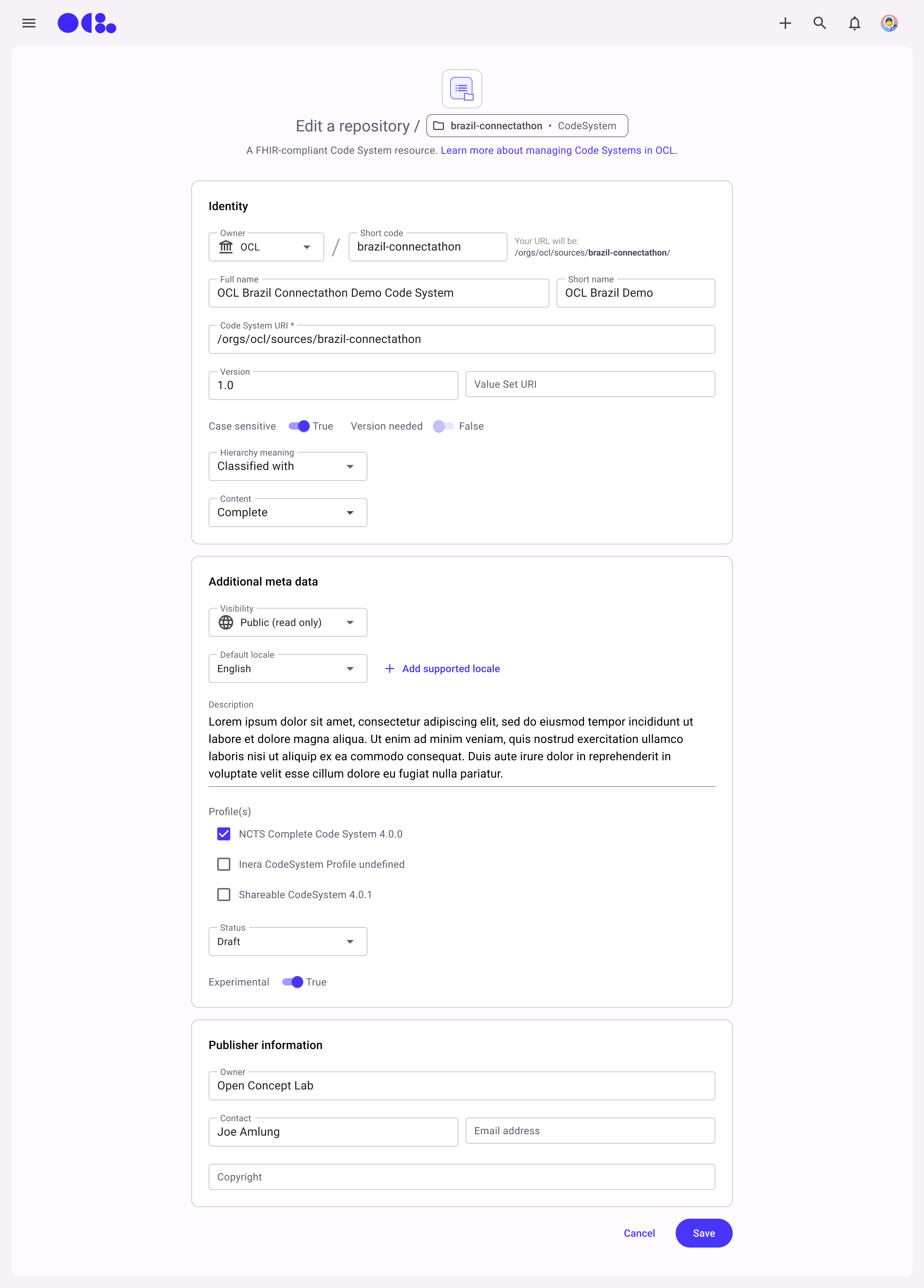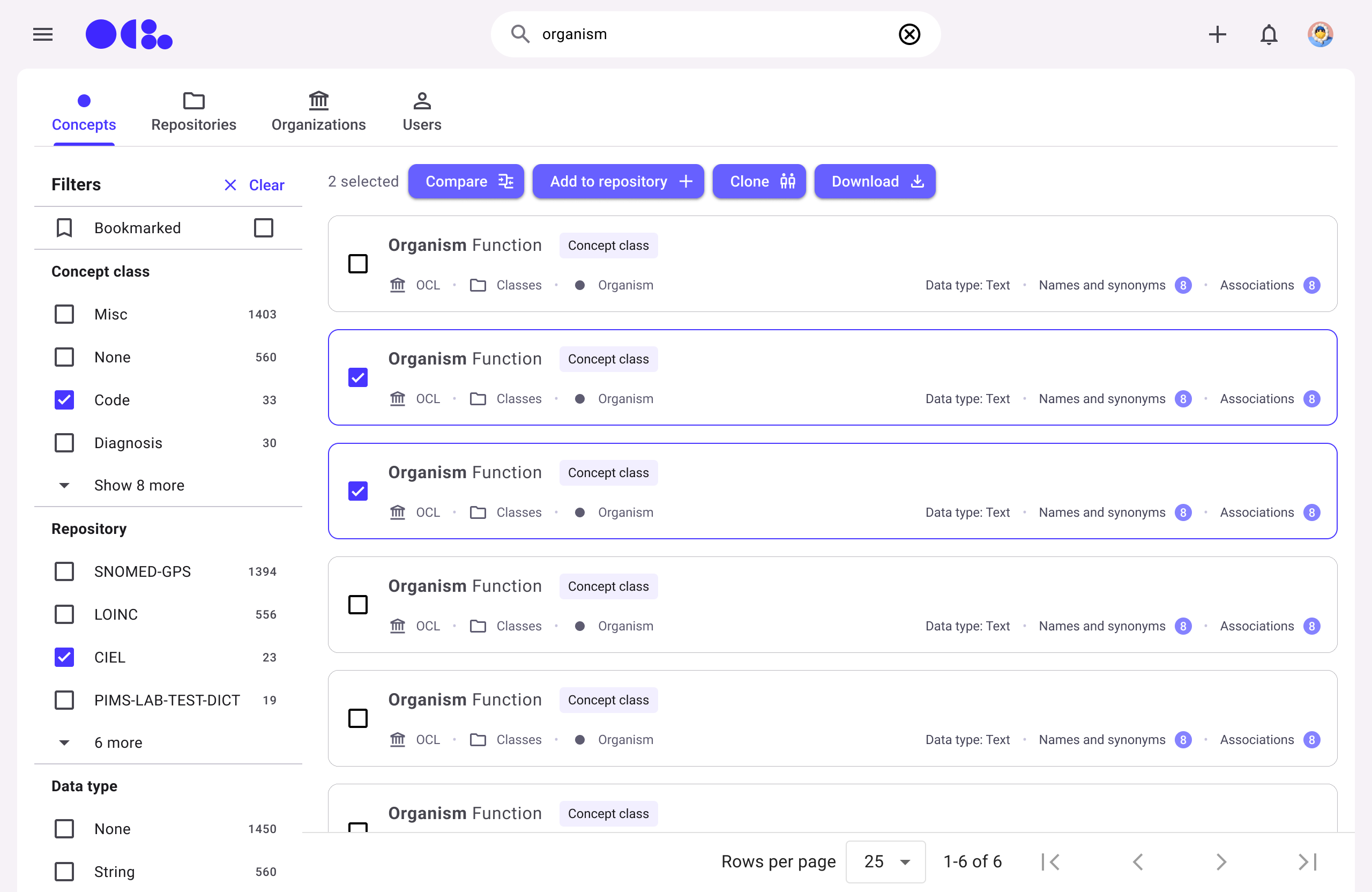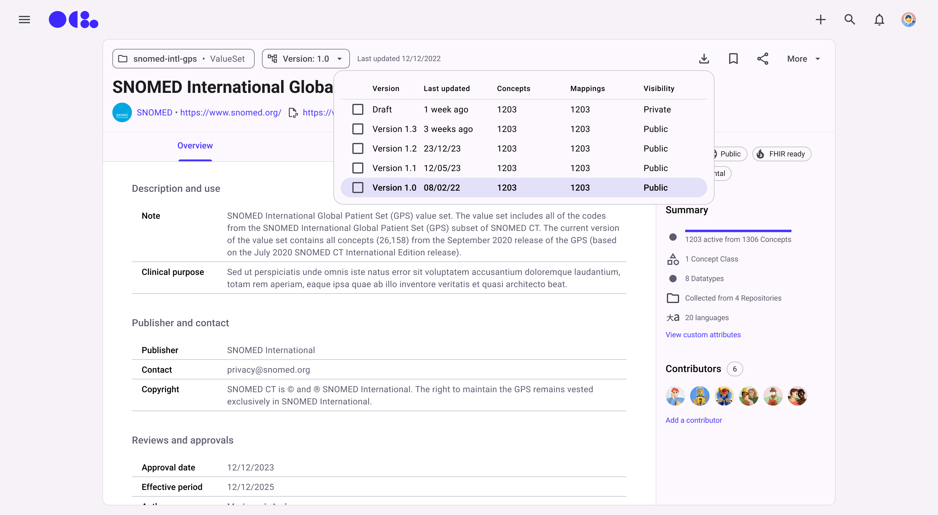 Concept card view is divergent from canonical (OCL Mapper work added multi-property support). Grouped/hierarchical views are mostly not implemented.