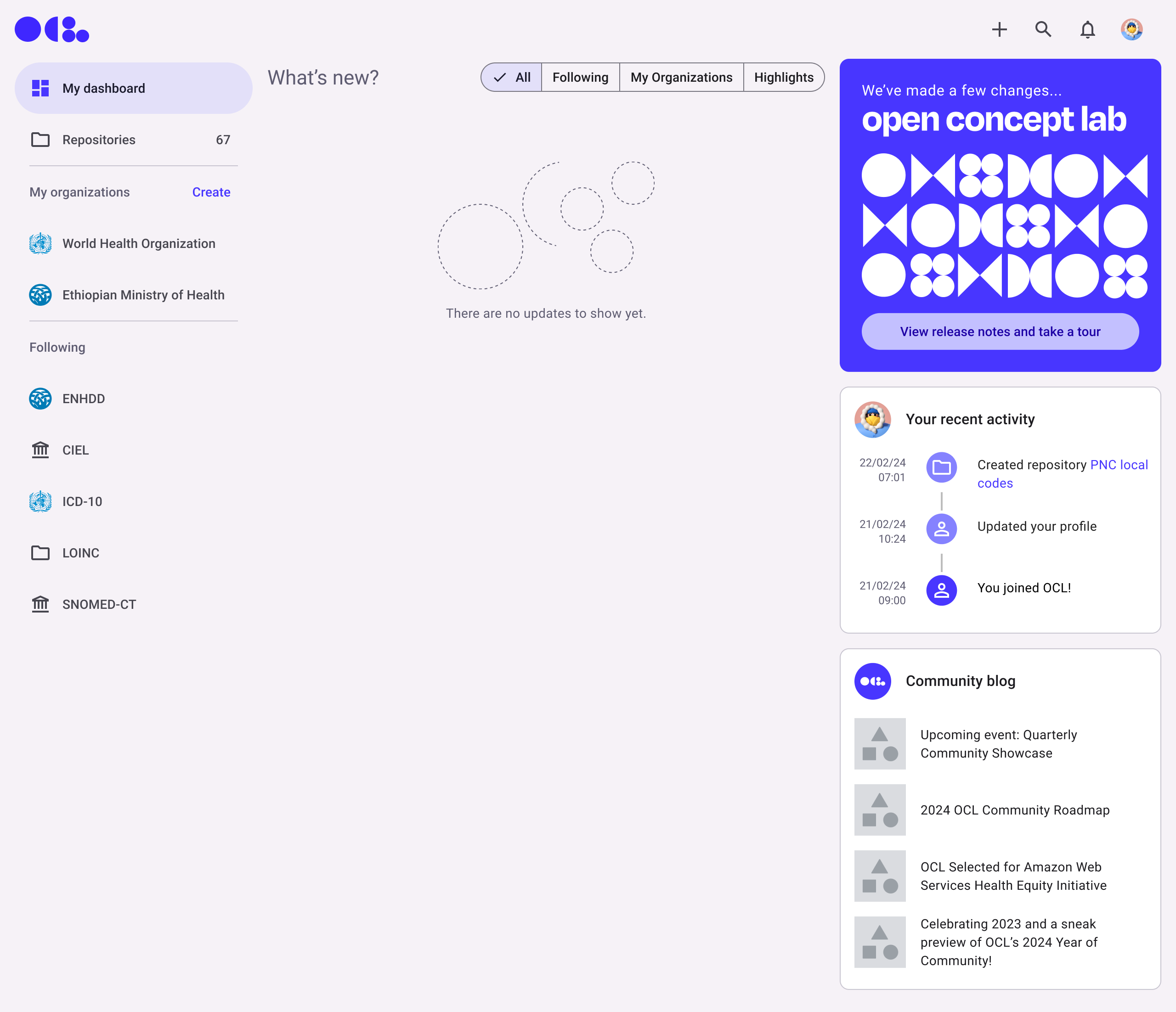 Signed-in and signed-out dashboards are not implemented. Feed card display has evolved; left-drawer empty state is still divergent.